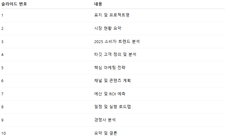 - 슬라이드 구조 구성 → 일관된 논리 흐름 설계