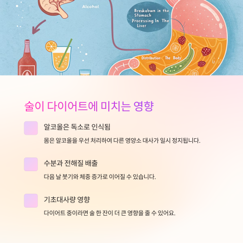 또한 술은 체내 수분과 전해질을 빠르게 배출시키기 때문에 다음 날 몸이 붓고, 체중도 일시적으로 증가한 것처럼 보이죠. 그게 실제로 ‘살찐 것’은 아니더라도, 심리적 스트레스를 유발할 수 있습니다.