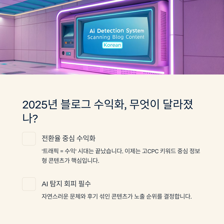 2025년은 '트래픽 = 수익'이던 시대에서 ‘전환율’ 중심 수익화로 패러다임이 완전히 이동한 시기입니다. 더 이상 일기형 포스팅이나 단순 후기형 글로는 광고 단가가 안 나옵니다. 대신 고CPC 키워드 중심 정보형 콘텐츠가 블로그 수익화의 핵심으로 자리 잡았죠.
